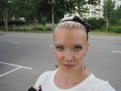 Mulla ei valitettavasti oo kunnollista lähikuvaa päivän meikistä, mutta luomella on sellaista koppakuoriaisen selän sävyistä (hih) hohtavaa vihreää. Saa muuten mun silmät näyttämään ihan ruskeilta! Useimmat luomivärit korostaa mun silmien vihreyttä, että tää oli kivaa vaihtelua =) Meikin jälkeen istuskelin kaverin kanssa vielä terassilla, ja nyt oonkin sitten ihan (vanha ja) väsynyt :)