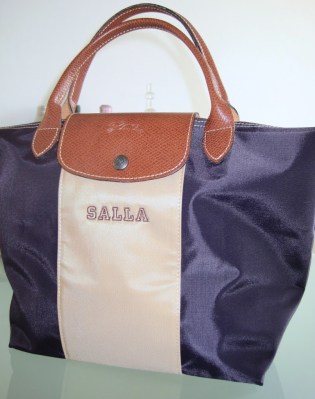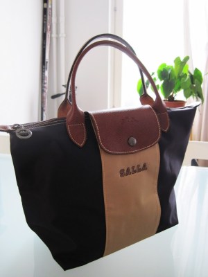 Sivuilla pystyi muokkaamaan Longchampin suosituimmasta Le Pliage -mallista oman näköisensä viimeistä silausta myöten. Tätä juttua ei vaan pystynyt ohittaa =) Laukkuun sai koon, värien, kantokahvan pituuden ja metalliosien materiaalin lisäksi omat nimikirjaimensa tai nimensäkin. Fontinkin sai valita. Ja mikä parasta, Longchamp on ranskalainen merkki, joten tulleista ei tarvinnut huolehtia.