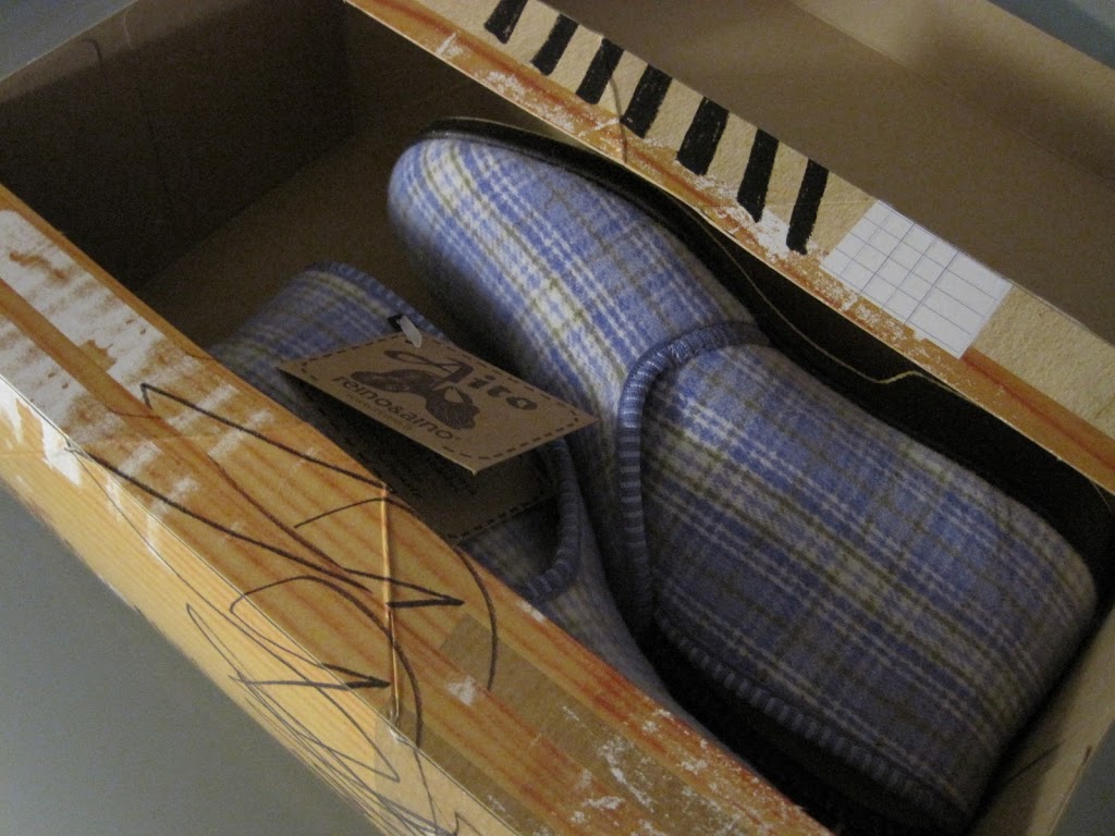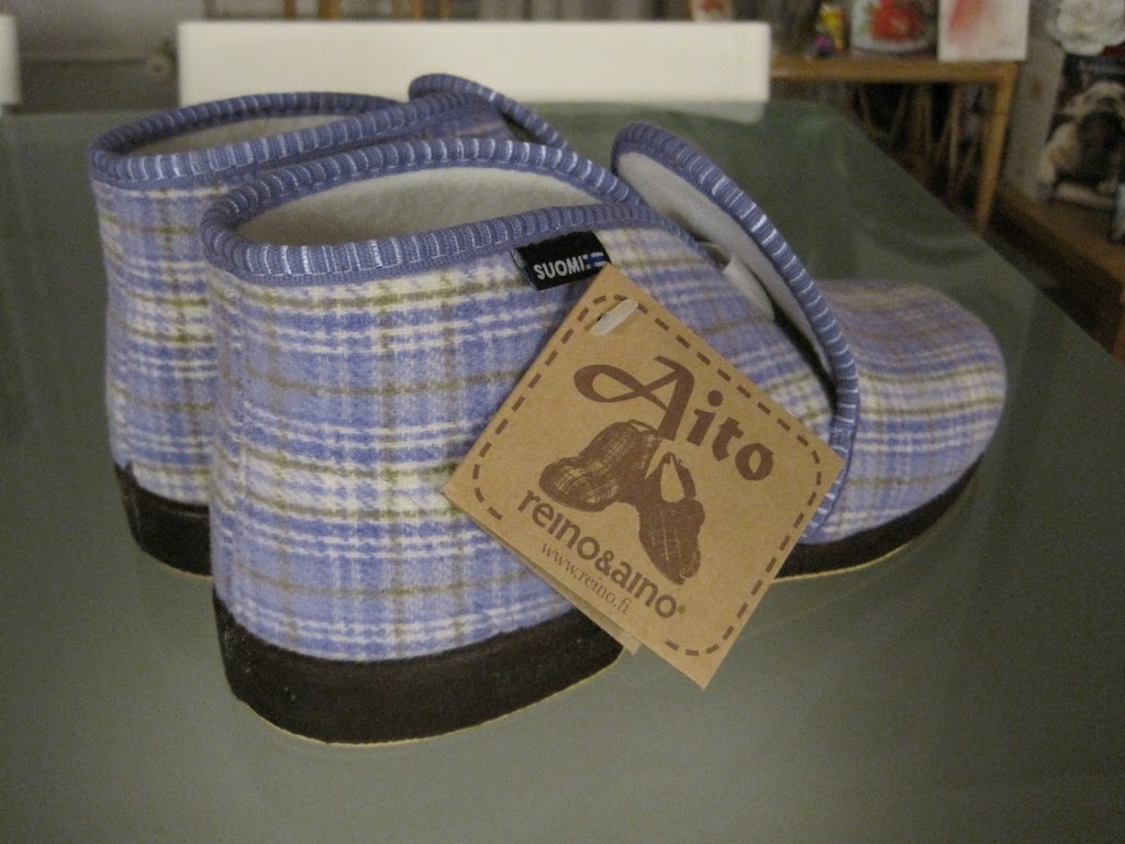 Tossut tuntuvat ihanan pehmoisilta jalassa, ja toiveissa olisi, ettei varpaiden tarvitsisi palella. Huomenna vien heti Reinoni tositoimiin. Jännä nähdä millaisen vastaanoton ne töissä saavat ;)