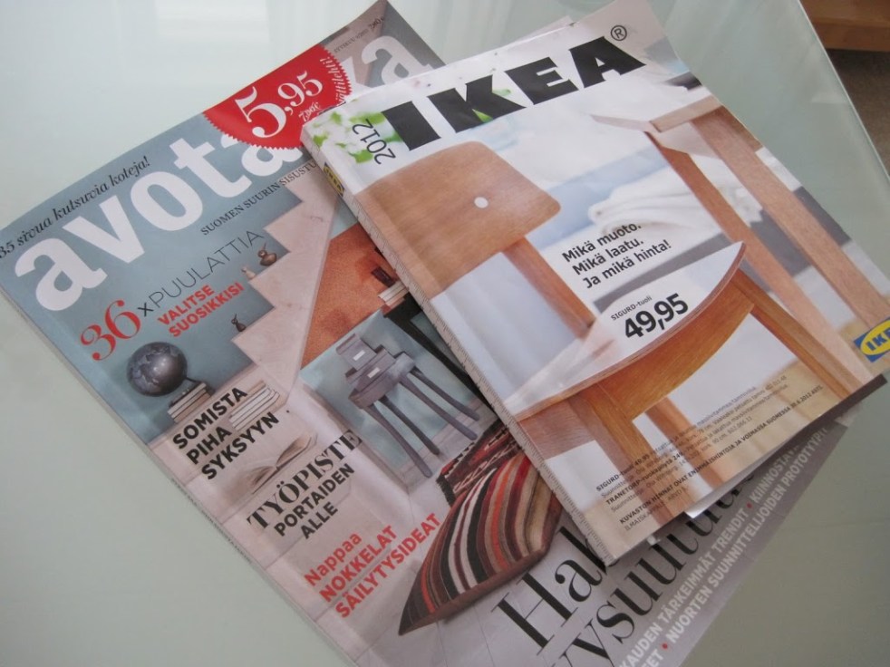 Kävin tänään uudessa kodissa mittailemassa ja katselemassa paikkoja sisustusmielessä. Nyt päässä pyörii vain tapetit, maalit, valaisimet, verhot… Ymmärsitte varmasti pointin :) Musta ei tällä hetkellä ole muuhun, kuin sisustuslehtiä lukemaan ja sisustusta suunnittelemaan joten sooon moro!