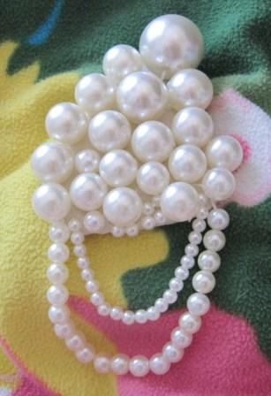 Nimittäin Ada helmikorun, jota voi pitää rintakoruna tai laittaa hiuksiin. Korun takana on sekä rintaneula että hiusklipsi. Mä ihastuin tässä korussa nimenomaan yhden pressikuvan tapaan pitää korua, hiuksissa tulen sitä tuskin koskaan (olosuhteiden, eli hiusten lyhyyden ja ohuuden, pakosta) pitämään. Enpäs taidakaan kertoa vielä tuota käyttötapaa/-paikkaa, näette varmasti sen täällä pian ;)