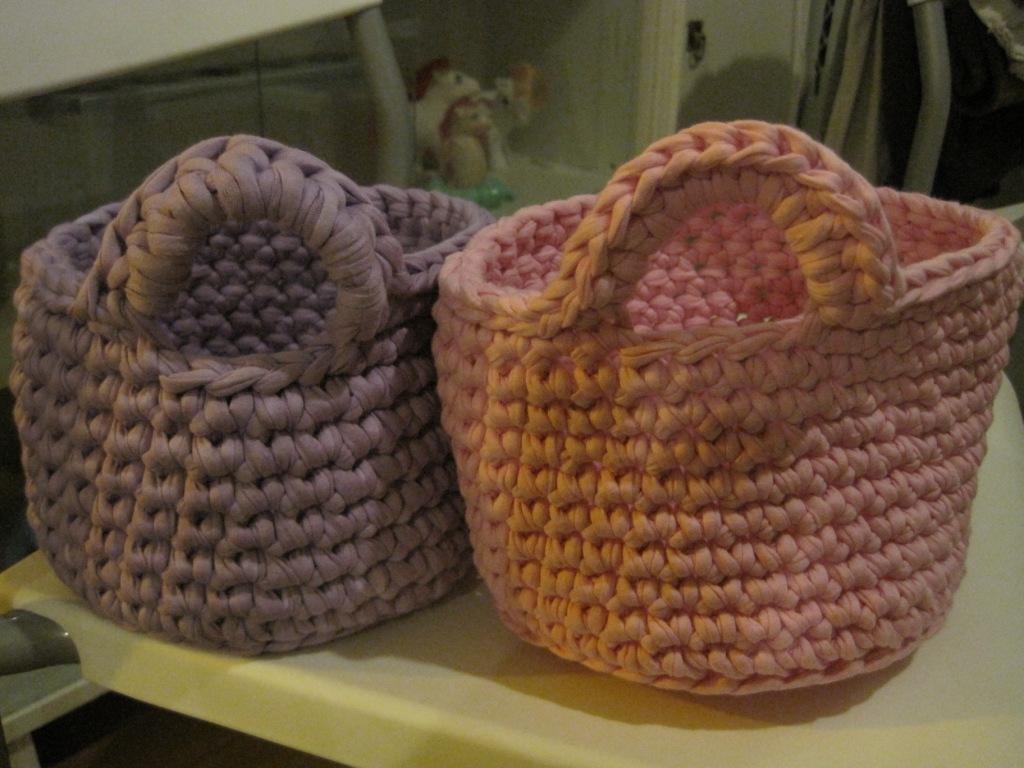 Näin kivat jutut tulivat puolestaan postissa, nimittäin virkatut korit kylppäriin. Kävin viime sunnuntaina joulumyyjäisissä, jossa oli koreja virkkaava nainen myymässä. Kyselin, onko missään koreissa tuollaista ripustinta. Vastaus oli, että ei, mutta äkkiäkös hän sellaiset virkkaa ja toimittaa minulle. Sain päättää koon ja väritkin itse. Ihanaa :)