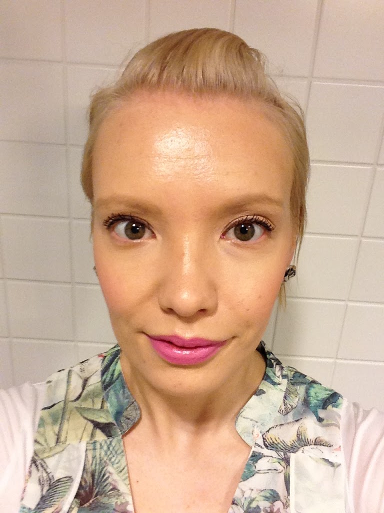 Meikkivoide oli todella ihana ja miellyttävä käyttää. Erittäin ohuella koostumuksella sai todella aikaan kauniin glown kasvoille. Iho ei näyttänyt meikatulta ja tuntui kosteutetulta. Hieman T-alue alkoi päivän mittaan kiiltää, mutta tähän olen tottunut lähes kaikkien meikkivoiteiden kanssa. Sekaihon kirous, phuuh. Aivan loisto tuote normaali- ja kuivaihoisille ja itsekin voisin aivan hyvin ostaa tämän, ja kokeilla T-alueelle vaikka mattaprimeria :)