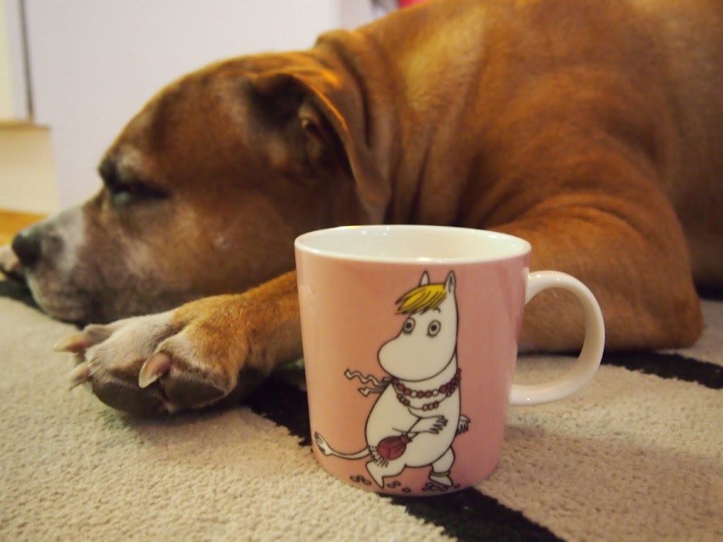Löytyykö sieltä Muumi-faneja? Mä nostan tässä kohtaa käden ylös :) Muumi-kirjat olivat rakkaita lapsuudessa, ja nyt aikuisena olen hankkinut Mörkö- ja Poliisimestari-pehmot, lakanoita ja mukeja. Alunperin mun piti ostaa vain lempparini Mörkö ja Mestari ja niiden lisäksi vain ihanan väriset tai söpöt mukit. Just. Söpöjä ja ihanan värisiä mukejahan tulee helskutti koko ajan lisää! Niin kuin nyt tämä Niiskuneiti :) Tämä puoli mukista on söpö, mutta ei myynyt vielä itseään ennen kuin näin toisen puolen…