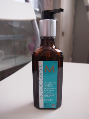 Moroccanoil-hiusöljyä olen himoinnut jo kauan. Kerran olen sen jo brittiläisestä nettikaupasta tilannutkin, mutta sain jälkeenpäin sähköpostin, jonka mukaan tuotetta ei voitu toimittaa Suomeen (outoa). Kysäisin tämänkin tuotteen osalta kampaajaltani, että onko minunlaisillani suomalaisen hennoilla ja lyhyillä hiuksilla edes tarvetta hiusöljyn käyttöön. Kampaajani sanoi, että hänen mielestään normaalia Moroccanoilia ei kannata ostaa, se vain tekisi tukastani rasvaisen näköisen. Light-versio voisi kampaajan mukaan sen sijaan sopia oikeinkin hyvin. Olin joskus tsekkaillut Moroccanoil-tuotteita Stockmannilla, ja silloin Light-öljyä ei ollut vielä Suomessa myynnissä lainkaan. Pari viikkoa sitten Stockalla käydessäni huomasin Moroccanoilin standin ja kävin katsastamassa, ja kappas Light-öljyä oli tullut! Tuotteet olivat vielä kanta-asiakastarjouksessa, joten ei kauan tarvinnut miettiä tätä ostosta. Olen käyttänyt öljyä nyt suihkun jälkeen kosteisiin hiuksiin. Yksi pumppaus on juuri sopiva määrä, ja olen ohjeen mukaisesti levittänyt öljyä myös hiusten pituuksiin, en pelkkiin latvoihin. Käytön jälkeen tukka tuntuu tosi pehmeältä, ja öljy ei tee tukkaa yhtään tahmeaksi tai rasvaisen näköiseksi. Tuoksukin on ihana, eli yhteenvetona voin sanoa, että tykkään tästä todella paljon! :) Mulla on sen verran hento ja pumpulimainen hius, että jos mun tukkani ei tästä muutu rasvaisen näköiseksi, niin ei kenenkään. Jos siis osaa käsitteen kohtuus ;).