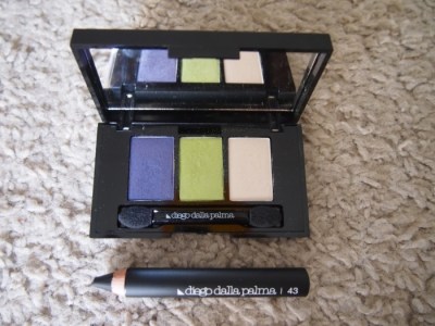 Ihana sinililan, limenvihreän ja valkoisen luomivärin paletti on muistaakseni viime vuoden kevään limited edition -mallistosta. DDP-innostukseni alkoi kynsilakoista ja levisi pian huulipuniin. Silmämeikkituotteet ovat puolestaan uusin aluevaltaukseni ;) Olen tehnyt paletilla kokeilumeikin (eli illalla ennen meikkien poispesemistä, jolloin on muuten tosi kätevä kokeilla uusia meikkejä!), ja tarkoitus on tehdä pian ihan ”oikeakin” meikki. Sinililaa olen ehtinyt käyttää rajauksena veljeni kolmekymppisillä.