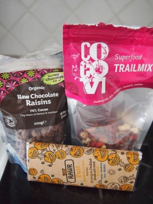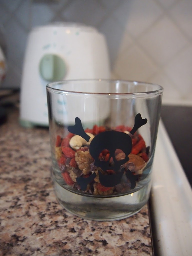 Haha, tämä kuva oli pakko laittaa, taustalla näkyy uusi ystäväni tehosekoitin ja etualalla ”karkkeja” eli Cocovin Trailmixiä aiheeseen sopivassa astiassa ;)