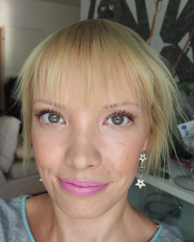 Hah, mä taisin vaan olla arka laittamaan noin ärhäkkää väriä heti koko luomelle ;) Ei ehkä välity noista kuvista, mutta se on tosi _pinkki_ :) Mutta kokeilen heti sopivan tilaisuuden tullen myös sillä tavalla!