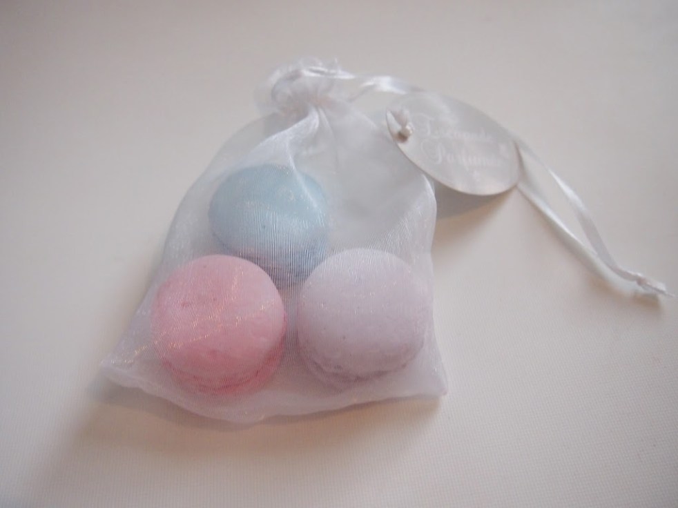 Kaverini kävi lomalla Ranskassa, ja koska hän tiesi mun välttelevän sokerin syömistä, sain tuliaiseksi ei-syötäviä macaroneja. Ihanan aidon ulkonäkönsä lisäksi leivokset tuoksuvat siis nannalle. Jaa mitä ne ovat? Kaveri luuli ostaneensa pieniä saippuoita, mutta nämä paljastuivatkin vaatekaapin tuoksupussukan sisällöksi. Mikä oli vain mieleisempi juttu mulle, koska en välitä palasaippuoista käsien pesussa. Työnsin pussin alusvaatekoriin, ja aina vaatekaapin aukaistessani kaapista haistaa miedon karkkituoksun. Ihanaa, pientä luksusta päiviin.