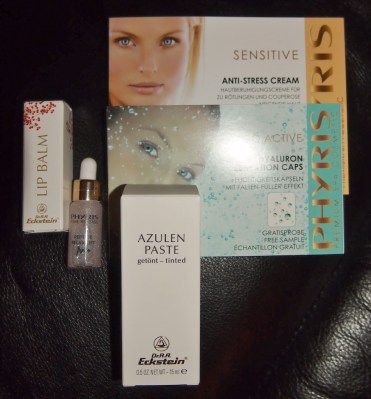 Goodie bagiin mulle oli sujautettu Tinted Azulen Paste ja Ecksteinin huulirasva sekä näytteitä Phyriksen Peptide Relax-Lift -seerumista, Hyaluron Sensation Capsista sekä Anti-Stress Creamista ja Maskista*.
