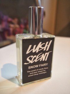 Lushin Snow Fairy kuuluu päivään jokaiseen, siis myös jouluun. Lushilla oli vähän aikaa sitten ainoastaan nettikaupassaan myynnissä pieni erä hajuvesiä, myös Snow Fairya. Mä olin tietenkin kärppänä netissä kärkkymässä ja onnistuin saamaan kaksi pulloa. Jee meitsi! Tuoksu ei ole aivan sama kuin suihkugeelissä, mistä olin aluksi vähän järkyttynyt. Pääsin asiasta kuitenkin nopeasti yli, ja olenkin nyt suihkinut tuoksua joka päivä. Vähänkö mun kaulahuivi muuten tuoksuu ihanalta, välillä yllätän itseni haistelemasta sitä hahaa! Pieni miinus on kyllä annettava rumasta pullosta. Miksei etiketti voi olla keijukaissöpö pinkki tai vielä parempaa, itse hajuvesi olisi pinkkiä? Pullo on vain jotenkin halvan näköinen, vaikka se ei sitä todellakaan ollut (30 ml 30 €). Onneksi sisältö kuitenkin ratkaisee.