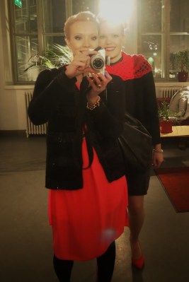 Ylempi kuva on aika järkky, mutta niitä harvoja, joita mulla on itsestäni. Näkyy edes vähän kokonaisuus. Alemmassa puolestaan on aika jännät värit valaistuksesta johtuen, nuo oranssinpunaiset vaatteemme ovat siis pinkkejä ;)