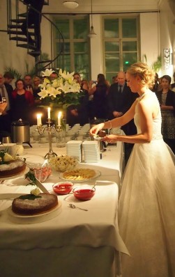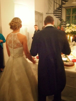 Mulla on ylipäänsä juhlista tosi vähän kuvia, mikä johtuu suureksi osaksi siitä, että juhlatila oli niin hämärä (ja muuten tosi kylmä!), että tuloksena on joko heilahtaneita ja hämäriä tai salaman kanssa ylivalottuneita kuvia. Onneksi juhlissa hääri koko illan ammattikuvaaja, ja käsittääkseni vieraatkin saavat sitten aikanaan niitä kuvia.