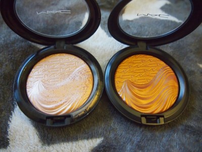 Vahinko-ostokseni on kuvassa oikealla, eli Magnetic Nude -kokoelman Extra Dimension Skinfinish. Kyseessä on siis normaaleja MACin Mineralize Skinfinish -highlighterereita kermaisempi, jopa lähes voidemainen korostustuote, jolla voi muotoilla ja korostaa kasvoja. Omistin ennestään samankoostumuksisen Whisper of Giltin, josta olen tykännyt kovasti. Nyt ostamani sävy on nimeltään Magnetic Appeal.