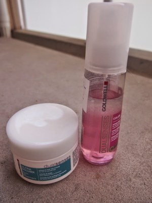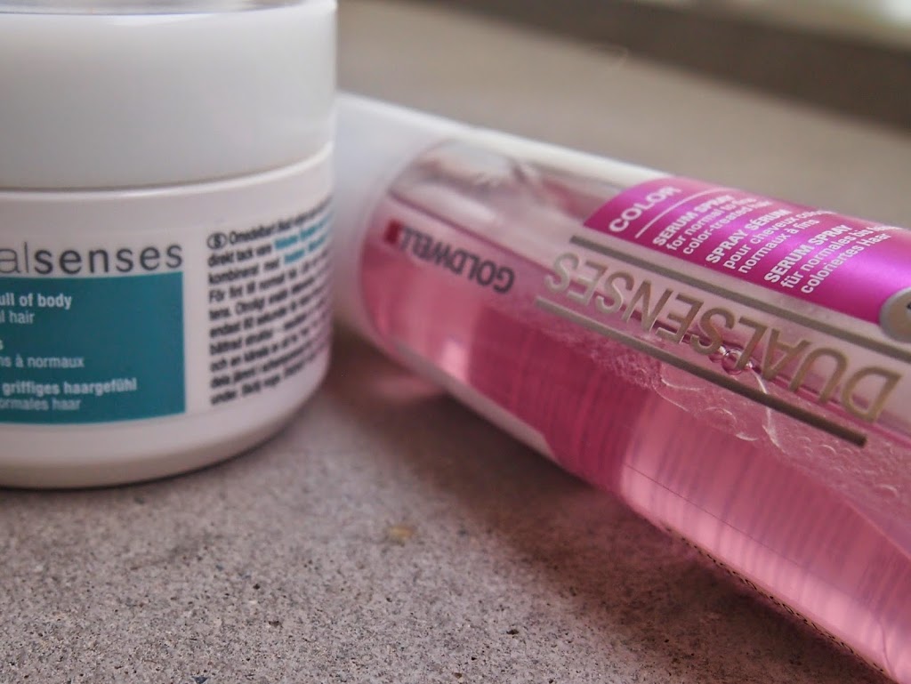 Lähetin Minnalle viestiä kiittääkseni ja hehkuttaakseni tuotetta. Samalla päätin hyväksikäyttää Minnan hiustietämystä, ja kysyin, olisiko hänellä vinkkiä siihen, miten saan hiuksistani ”karvaisuutta” vähennettyä. Minna ehdotti Goldwellin Color-sarjan Serum Sprayta, jonka kävin heti seuraavana päivänä ostamassa.