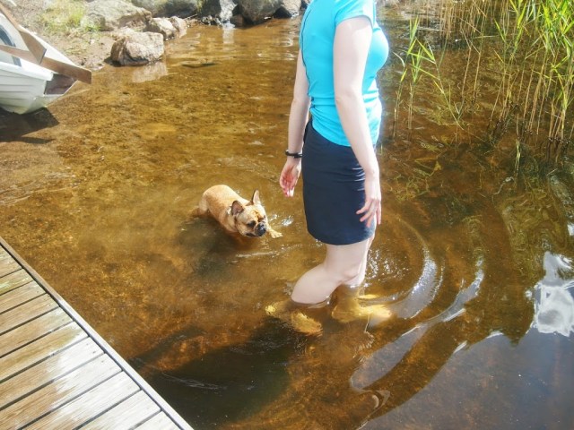 Yleensä mökkireissut ovat mulle todellisia stressinpoistohetkiä ja oikein tunnen, kuinka pulssi hidastuu ja verenpaine laskee. Tällä kertaa mukana oli kuitenkin kaksi hölmöläistä, joiden kaitsemisessa oli täysi työ, varsinkin kun kummankaan uimataidosta ei ollut varmuutta. Takana oli myös (jälleen) huonosti nukuttu yö. Tora ei nimittäin vielä tuossa vaiheessa ollut oikein sisäistänyt, että öisin kuuluu nukkua. Ihme tyyppi.