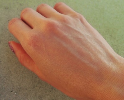 Ambre Solaire BB Cream on suojakertoimen 30 sisältävä sävytetty aurinkovoide kasvoille ja dekolteelle. Kokeilin sitä kädelle ennen kuin nappasin voiteen mukaani ja ihastelin, miten luonnollinen, hieman kuultava ja nätti pinta sillä tuli!