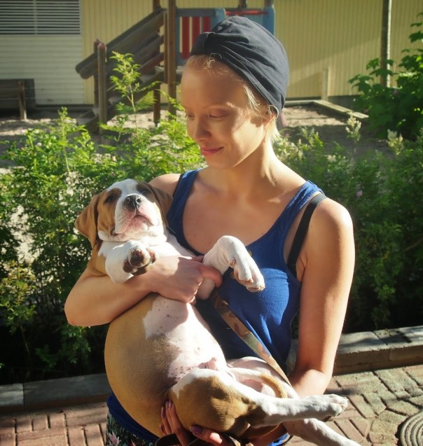 Valitettavasti mulla ei ole tästäkään meikkipohjasta parempaa kuvaa, ja vähän yksipuolisia muutenkin nämä mun kuvat haha. Aiemmassa kuvassa nappasin Toran syliin huvikseen, mutta tässä se piti oikeasti kantaa autolta kotiin, kun pikkuherra oli niin puhki pentutreffien jäljiltä :D Ja se ei oikeasti kyllä ole noin pulska kuin tässä kuvassa näyttää, jotenkin se röhnöttää omituisesti hih.