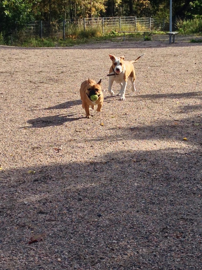 Klo 18 tuli pyyntö herra Rölliltä, että voisiko Beni tulla hänen luo leikkimään. Rölli on Benkun kaveri ja amstaffi rodultaan :) Rölli haki omistajineen Benin leikkitreffeille, ja sillä aikaa me Toran kanssa vähän blogattiin ja tehtiin lenkki kerrankin kahdestaan.