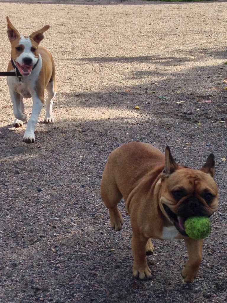 Olimme puistossa normaaliin tapaamme noin puolitoista tuntia, ja sitten ihmiset ja koirat olivat niin väsyneitä, että lähdimme kotia kohti.