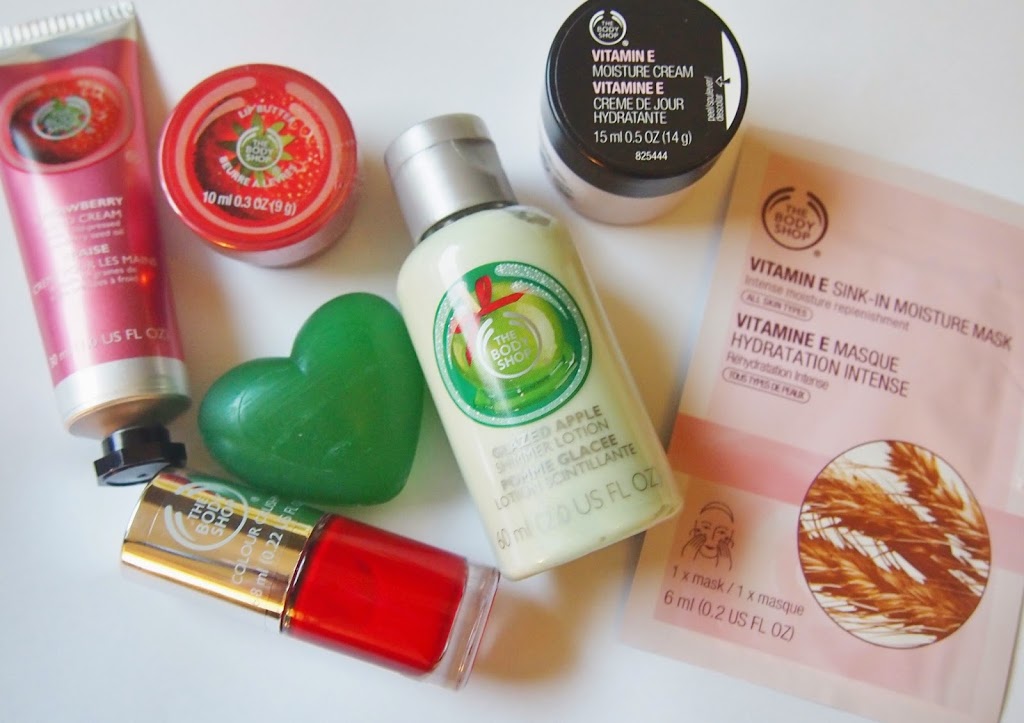 Body Shopin joulukalenterin toisen viikon luukkujen sisältö näytti tältä. Lisää palasaippuaa, lisää samojen sarjojen tuotteita. Ei sillä, tykkään esimerkiksi Glazed Applen tuoksusta tosi paljon, mutta kyllä yksi tällainen hohtava Shimmer Lotion olisi riittänyt, sellainenhan tuli karpalosarjasta edellisellä viikolla. Vitamin E -kosteusvoiteesta ja -naamiosta tykkäsin kuitenkin kovasti, mielelläni kokeilen!