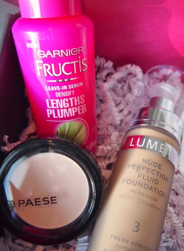 Garnierilta oli boksissa jännä tuote, nimittäin Fructis Densify Lenghts Plumper Leave-In-Serum. Katsoin aluksi, että kyseessä oli kasvotuote, mutta tämähän onkin hiuksille! Tuote lupaa tuuheutta pituuksille ja latvoille. Yleensä olen tottunut enemmän tyvikohotusta tuoviin vaahtoihin ja suihkeisiin, joten tällaista pituuksille suunnattua tuotetta en taida omistaakaan. Kyllä kokeilen!
