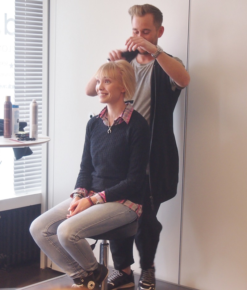 Jenni ja Johan tekivät malleilleen aivan ihanat kampaukset, jouduin taas vähän huokailemaan tällaisten pitkien kutrien perään… Sitten olikin vuorossa vielä jännempi osuus, nimittäin malleja alettiin ottaa meistä bloggaajista.