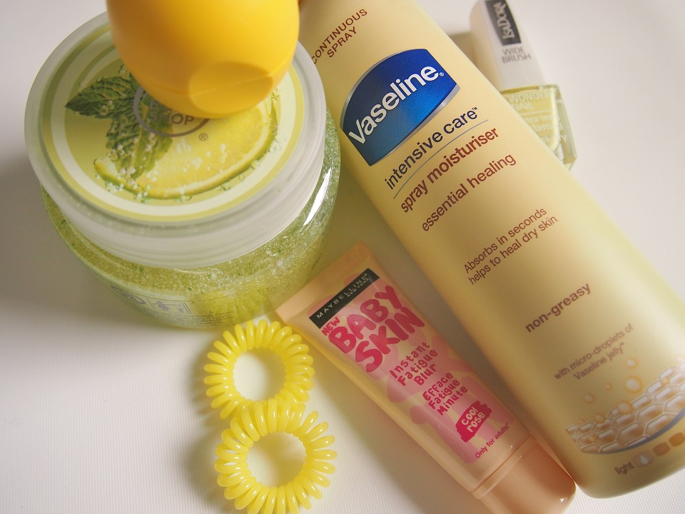 Ensimmäinen keltainen ystäväni taisi olla Vaselinen Spray Moisturiser. Moni on jo tottunut suihkimaan iholleen öljyä ja aurinkosuojaa, mutta ihan tavallinen kosteusvoide on suihkemuodossa tuntemattomampi juttu. Kaikki keinot vartalon edes silloin tällöin tapahtuvaan rasvaukseen pitää kokeilla, joten ostin Vaselinen siinä toivossa, että sen käyttö olisi helppoa ja nopeaa. Ja niin se onkin! Korkin saa auki ja kiinni kätevästi korkin yläosaa kääntämällä ja suihke tulee pullosta juuri sinne, minne olet suuttimen kohdistanut. Tätä uskaltaisi suihkia muuallakin kuin kylppärissä! Kevyt voide imeytyy nopsaan ja tuoksuu neutraalin perusvoidemaiselle. Vielä tähän kun saisi sitruunan tuoksun, niin en varmaan mitään muuta voidetta käyttäisikään ;)