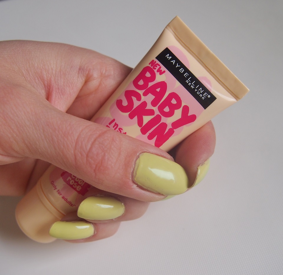 Viimeinen keltainen ystäväni on Maybellinen uusi Baby Skin -meikinpohjustaja. Baby Skinejä ilmestyi nyt keväällä kaikkiaan kolme, huokosia häivyttävä Instant Pore Eraser ja kaksi erilaista heleyttävää Instant Fatigue Blur -primeria, Warm Apricot ja tämä (kolmannen) kaveribloggaajan mulle antama Cool Rose. Käsittääkseni kellertävänsävyinen Warm Apricot on tarkoitettu lämpimälle ihonsävylle ja tämä vaaleanpunainen kylmälle, mutta kyllä mun lämminsävyiseen ihoon Cool Rose sulautuu ihan loistavasti. Kannattaa siis kokeilla omalla iholla ennen ostamista, eikä luottaa sokeasti suosituksiin :) Baby Skin on hyvin samankaltainen kuin mulla tällä hetkellä käytössä oleva Clarins Instant Light Radiance Boosting Complexion Base 01 Rose. Erot ovat moninkertainen hinta (Baby Skin maksaa n. 9 euroa) ja se, että Clarins on hieman enemmän hohtava. Mun mielestä kummatkin ovat ihan yhtä hyviä, joten jos nyt ostaisin jommankumman, niin ehdottomasti marketista edullisen Baby Skinin. Kiinnostaisi kyllä kovasti kokeilla myös huokosia häivyttävää versiota, koska vääränlaisen primerin ja meikkivoiteen yhdistelmällä saan meikkivoiteen vajoamaan kivasti nenän alueen huokosten pohjalle. Ei kiva!