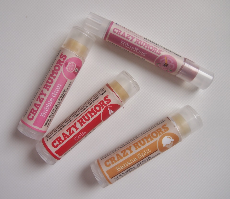 Ensin tulivat värikkäät Baby Lipsit, sitten mielettömällä makuskaalalla varustetut Hurrawt ja nyt sitten Crazy Rumorsit. Miksi jaksoin innostua Crazy Rumors -huulirasvoista, vaikka luulisi, että kahden edellämainitun merkin hypetyksen jälkeen kiintiö olisi täynnä? No siksi, että nämä tuoksuvat KARKILTA!! Baby Lipsien tuoksumaailma on enemmän hedelmäinen, sellainen aika esanssinen, vaikka kyllähän mä niistäkin tykkäsin ja käytän edelleen. Vegaanisten Hurraw-rasvojen tuoksut ovat puolestaan maanläheisiä, valikoimassa on mm.  Earl Greyn, mantelin ja sitruunan tuoksuisia puikkoja.