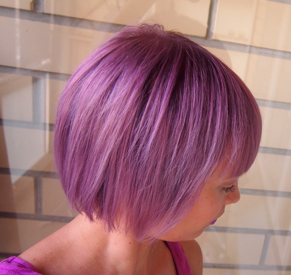 Oops! Mulla oli eilen kampaaja-aika ja olin saanut fiiliksen, että olisi kiva jatkaa ponitukkaisena, mutta vetää sävyä vähän enemmän violettiin. Mun Stage 11:n vakkarikampaaja Tiina oli lomalla, mutta kävi varsinainen tuuri, sillä pastelliasiantuntija Eva oli töissä. Eva on mm. Jannika B:n pinkkien kutrien takana oleva kampaaja, ja Jannika B toimi inspiraationa aiemmille pinkeille hiuksilleni. Eva sai heti kiinni siitä mitä hain ja hän ehdotti, että laitettaisiin tyveen vähän tummempaa sävyä kuin latvaan. Mä vaan nyökyttelin tyytyväisenä, on ihanaa kun kampaaja kertoo suoraan, miten hänestä olisi paras toimia. Luotan pitkälti kampaajan näkemyksiin, koska hän se ammattilainen on. Tosin mulla on ollut niin hyvä kampaajatuuri, että voin luottaa kampaajaani. Valitettavasti aina ei ole niin. Mutta siis, tällä kertaa haluttiin tehdä sävystä vähän viileämpi ja huurteisempi. Ja sitä saatiin :D