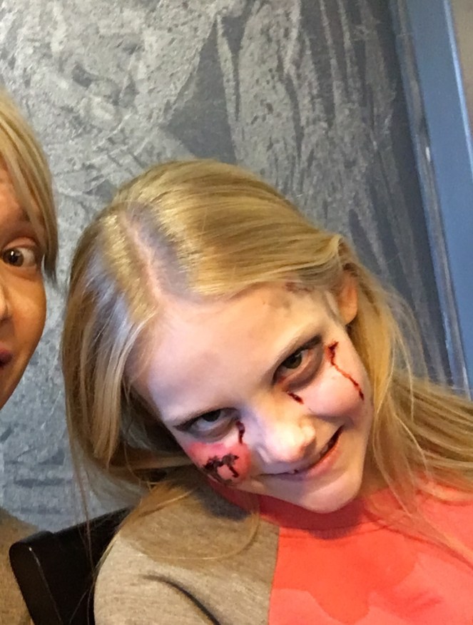 Roskildessa juhlittiin perjantaina Halloweenia ja keskustan läpi käveli pelottava kulkue, jossa oli mukana niin luurankoja, ruumisarkkuja kuin noitiakin. Tällainen hirvittävä zombie oli mun seurueessa liikenteessä :D