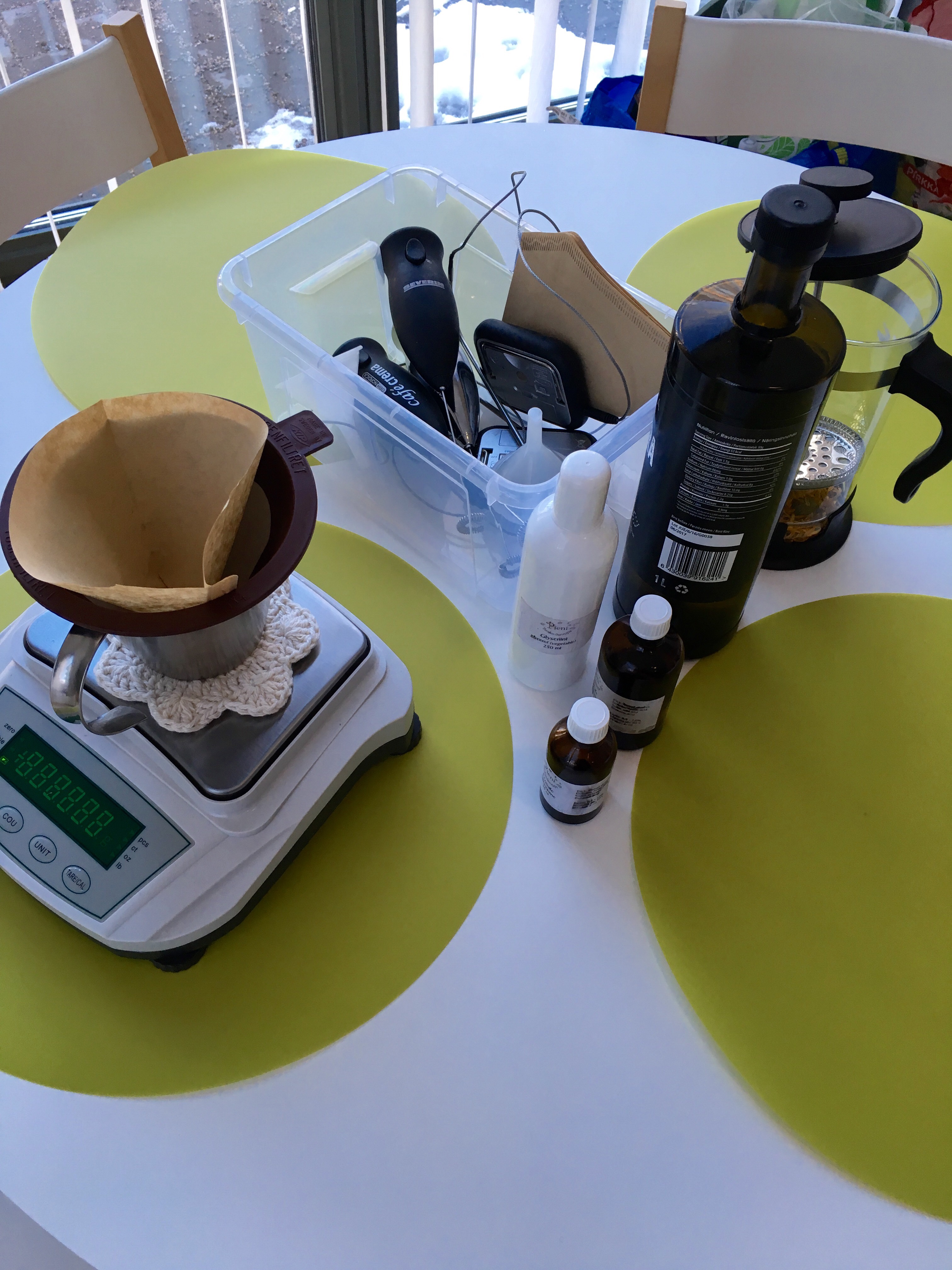 Luonkosin naiset kertoivat yrityksestään ja vakuuttavista taustoistaan kosmetiikan ja luonnon parissa. Sitten olikin aika laittaa meidät hommiin! Kurssilla pääsee siis todella itse tekemään, eikä tarvitse vain sivusta seurata ja kuunnella kun vetäjä tekee.