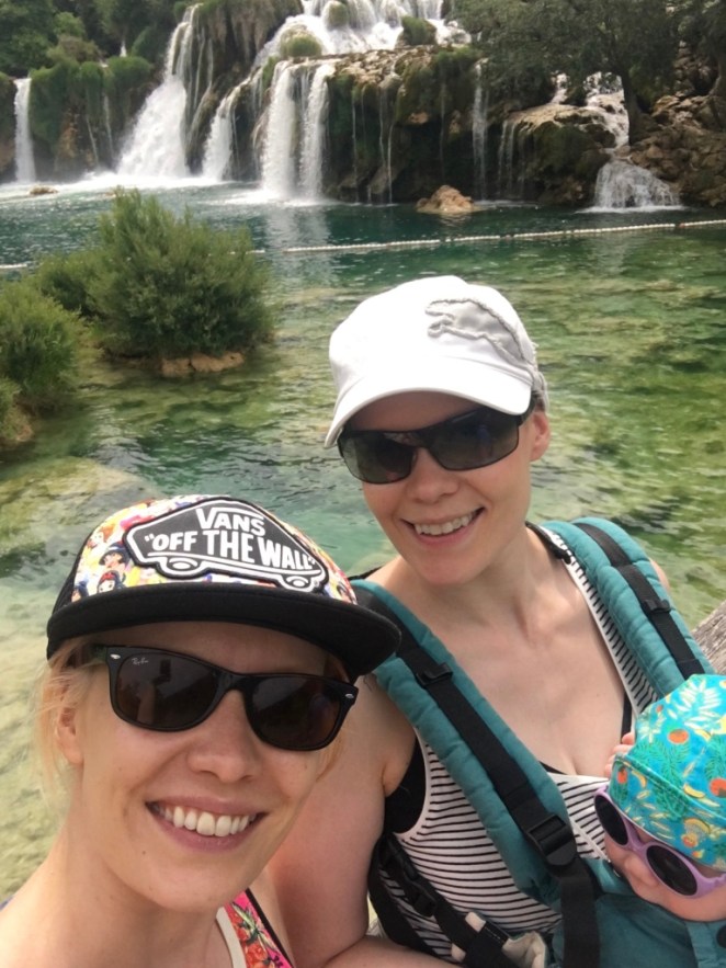 Me aikuiset olimme etukäteen ajatelleet pilke silmäkulmassa, että Saga on se reissun rosvosektori. Kun ei voinut tietää, miten lennot sujuvat tai ylipäätään mikään! Täytyy jälkikäteen todeta, että meillä oli oikeastaan koko loma täynnä vastoinkäymisiä, mutta mikään niistä ei liittynyt vauvaan! Mä kerroin jo aiemmin omasta ambulanssin vaatineesta allergiakohtauksestani. No, seuraavana päivänä lähdimme Krkan luonnonpuistoon, mitä olin etukäteen odottanut reissussa eniten. Se oli huikea paikka, niin kaunis <3 Onneksi tälle päivälle ei osunut mitään vastoinkäymisiä.