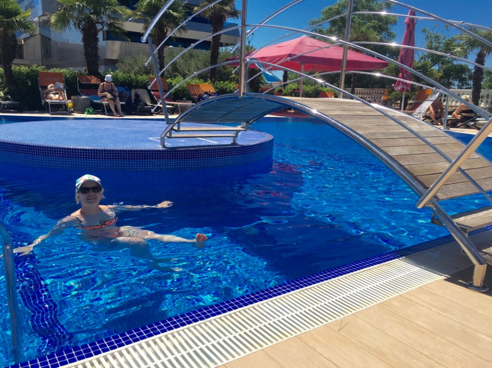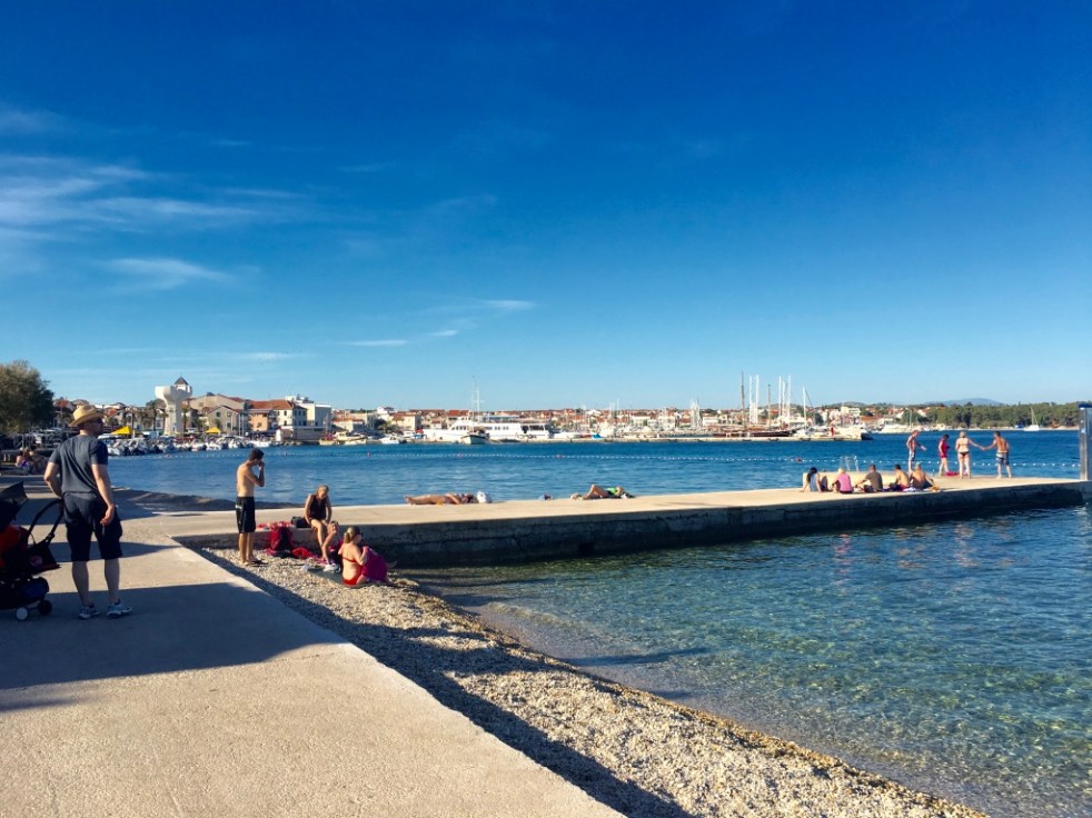 Siitä eteenpäin sitten kävikin niin, että Rössö sairastui kuumeiseen vatsatautiin. Hän käytännössä vietti puolet lomasta hotellihuoneessa :( Me koetimme sitten Henkan kanssa tehdä potilaan olon mahdollisimman siedettäväksi ja toimme nälkäisen vauvan aina syötettäväksi kipeälle Rössölle, ja jätimme sitten hänet taas lepäämään. Mä olen sellainen, että koen tosi voimakasta empatiaa jos toisella ei ole hyvä olla ja mun piti ihan pakottaa itseni tekemään silti normaaleja lomajuttuja, vaikka Rössö ei niitä päässytkään tekemään. Olimme tietysti suunnitelleet loppuviikolle kivoja juttuja, mm. retkeä lautalla läheiseen Sibenikin kaupunkiin, mutta se sitten peruuntui. Ja jos joku miettii, että miksi me emme voineet Henkan kanssa lähteä, niin syy on yksinkertainen: ei kuumeiselle ja kipeälle äidille voinut jättää vauvaa hoidettavaksi ja toisaalta vauva syö 2-3 tunnin välein, niin me emme Henkan kanssa kovin pitkälle siinä ajassa ehtineet :) Mutta meillä oli kyllä tosi hauskoja parituntisia Henkan ja Sagan kanssa kun teimme täsmätutustumisia Vodicen eri paikkoihin :)