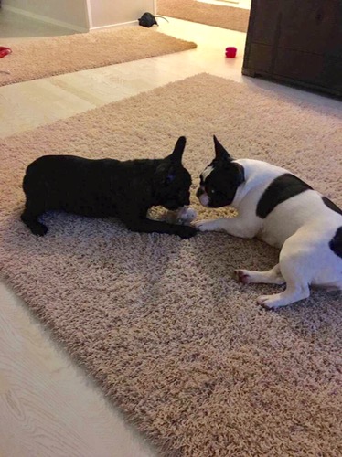 Mun possut lähti eilen lomalle. Fionan kummitäti Jonna asuu Fionan äidin (joka on myös Benin sisko <3) Hertan ja vuoden ikäisen Lempi-bulldoggin kanssa landella ja hän lupasi hoitaa kaikkia neljää kaveria mun reissun ajan :D Toki kun välimatkaa on parin tunnin ajomatkan verran, tulee koirien hoitoajasta mun reissua pidempi, ja he tosiaan lähtivät hoitoon eilen. Jonkun muun hoitajan kanssa saattaisi joutua stressaamaan, että onko ok, kun näitä extrapäiviä tulee, mutta Jonna sen sijaan oli harmissaan, kun mun matka on ”vain reilun viikon, eihän me ehditä tehdä koirien kanssa tarpeeksi kivoja juttuja, mitä oon suunnitellut” :D