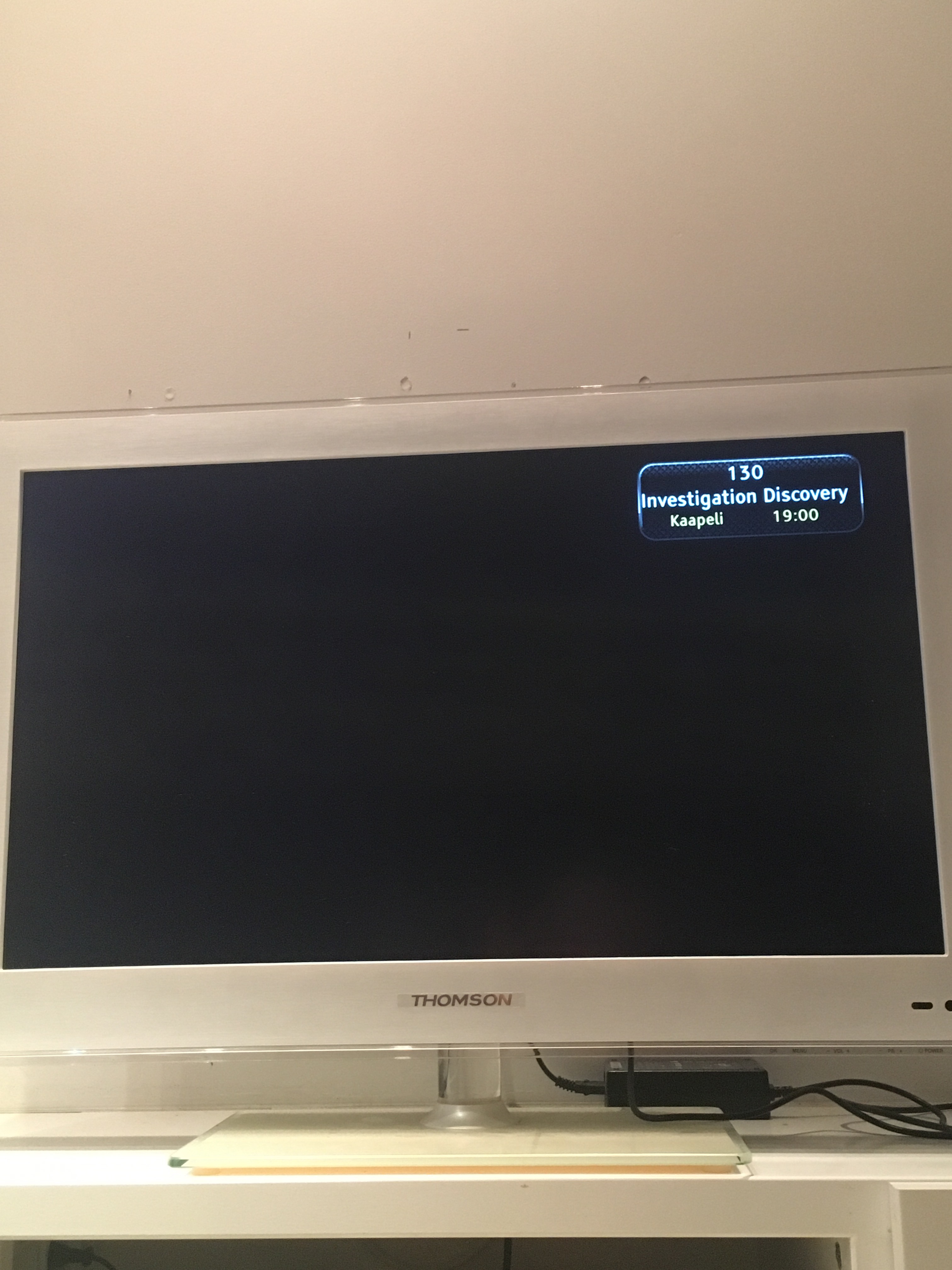 Torstaina sitten säädin GoogleMapsin kanssa ja löysin kuin löysinkin Heidin työpaikan, josta adapterin sain hakea. Jes. Tänään sitten Netflixiä. Pyykkäsin Finkun pissaa lattialta jo vähän paremmalla fiiliksellä. Illalla laitoin johdon ja adapterin paikoilleen. Sitten aloin etsiä kanavaa, josta oikea kuva näkyisi. Sen sijaan, että olisin näillä jumitusaivoilla tajunnut heti painaa source-nappulaa, rämppäsin tietenkin tv-kanavia niin kauan, että tv meni jumiin. No eihän tässä mitään, että kaukosäätimestä ei komennot toimi, mutta kun tv ei reagoinut mitenkään siinä itsessään oleviin nappuloihinkaan. Ja taas säätöä, auttakaaaaaaaa mitä mä teeeeeeeen. No, sain ohjeet irrottaa kaikki johdot joksikin aikaa, minkä tein, useasti, ei mitään vaikutusta. Mun telkkari on jäätynyt, enkä mä tiedä yhtään, mitä sille pitää tehdä. Kuulemma pitää resetoida (schmesetoida) ja palauttaa tehdasasetuksille, mutta miten hitossa kun mikään nappula ei toimi. Huoh. Pitää kuulemma googlettaa. Oon yrittänyt, ei löydy. Mulla on vanha, joku ihan superkämänen telkkari, jonka ostin ainoastaan sen takia, että se on valkoinen (kyllä.), niin ohjeita ei löydy nimeksikään. Tai löysin mä sellaisen ohjeen, että ei kannata ostaa tämän merkkistä tv:tä, koska siihen ei löydy ohjeita mistään. Oo ja koo. No mutta, uuteen telkkariinhan mulla onkin hyvin varaa.