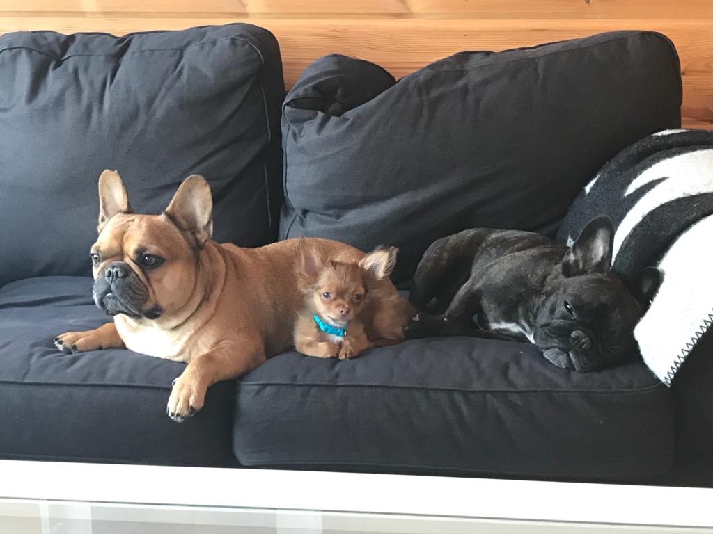 Mutta oikeasti. Onhan tää koirakolmikko ihan hullun söpö. Ja Gizmo on tykästynyt bulldoggeihin ja muhun tosi paljon <3 Ja niin mekin siihen.