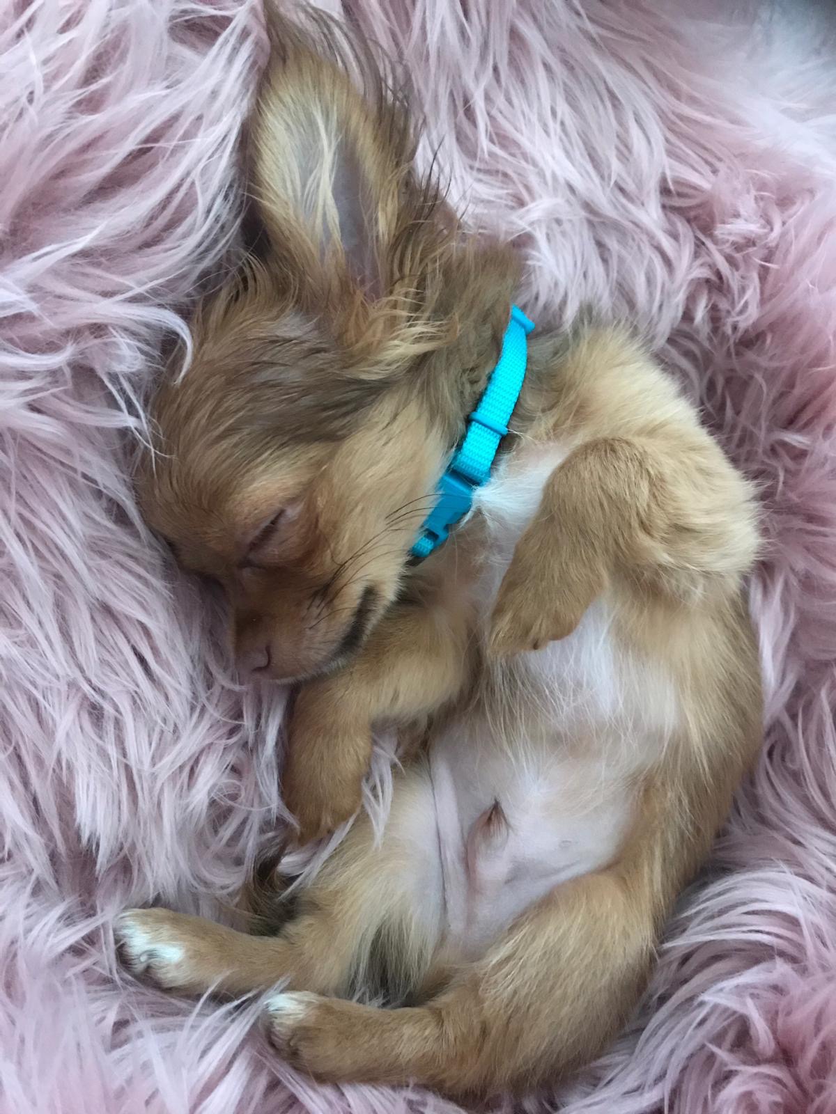 Saanko esitellä: hän on Gizmo. Hän on 4,5 kuukautta vanha ja hän on chihuahua. Hänen lempinimensä on Miimo.