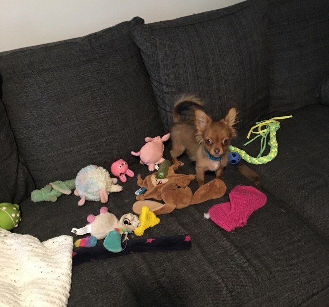 Valehtelisin jos väittäisin pitäväni siitä, että olkkarissa ei TAASKAAN voi olla mattoa, ja lattiat ovat täynnä sanomalehtiä. Ja siitä, että Fiona, lähes 3 v., taantui myöskin pissaamaan lattialle. Huh onneksi sitä kesti vain pari päivää, se olis ollut jo vähän liikaa! Hiljaisia hetkiä ei ole sitäkään vähää kuin ennen. Finkku ja Gizmo (eli ”pienet”) ovat nimittäin aivan samalla tasolla leikeissään, ja täällä on välillä ihan jäätävä meno ja meininki. Katsokaa Instasta jos ette usko :’ ) Ja vaikka mä kerään päivittäin lelut pois sohvalta, sohva näyttää seuraavana päivänä taas lelukaupalta.