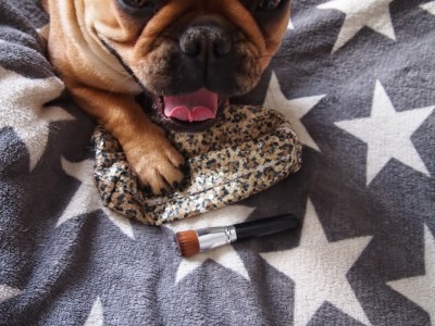 Tuotekuvien ottaminen on välillä aika tuskallista, kun jokaisessa kuvassa on (ainakin osa) bulldoggia. Homma menee yleensä niin, että mä nauran vedet silmissä, ja Benin suunnalta kuuluu hirmuinen haistelun ja louskutuksen ääni :D