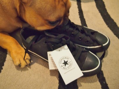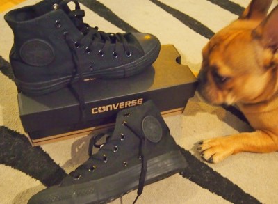 Löysin nimittäin nahkaiset Converset ja juuri siinä värissä kuin halusinkin! :) Tulin keväällä siihen tulokseen, että toiset Conssit on saatava, koska tuntui, ettei mulla ollut mitään muita kenkiä jalassa ikinä. Hävetti jo postata tänne blogiinkin kuvia…”ja jalassa Converset. Taas.” ;) Kankaisena nämä kaverit ovat valitettavasti jaloilleni liian lörpöt, eivätkä tue jalkaa lainkaan. Niinpä se oli nahkaiset tai ei mitään. Nämä löytyivät Deres-kaupasta ja kävipä vielä niin hienosti, että koirani Riki, joka kunnostautui jo viime kesänä ostaessaan mulle Marc Jacobsin laukun, halusi ostaa nämä mulle synttärilahjaksi. On mulla sitten upea koira ;)