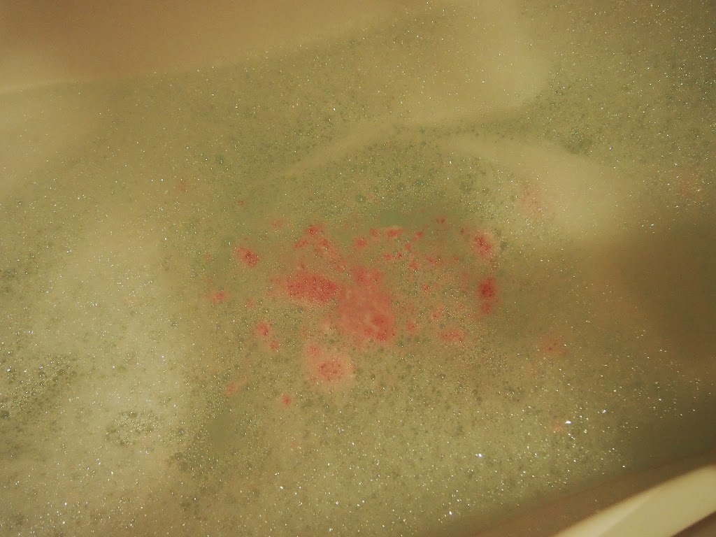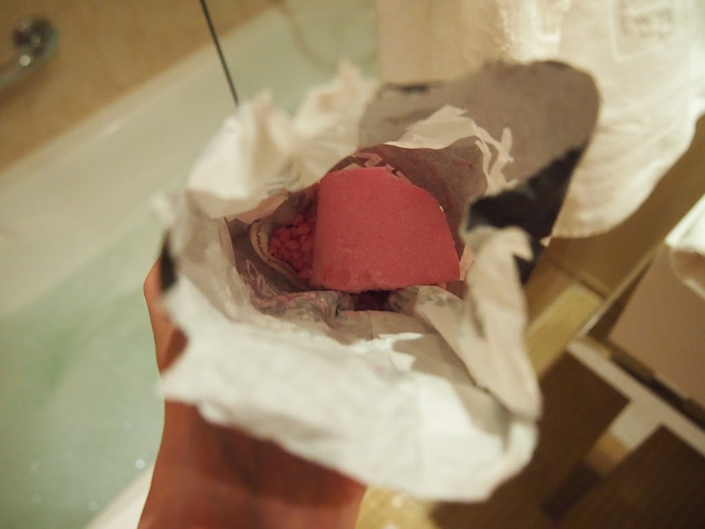 Vihreä epäilyttävä kasa on Lush Stepping Stone -jalkojenkuorintaa. En ole varma, saako tätä Suomesta, tilasin omani Britti-Lushilta. Stepping Stonesta murennetaan pieni pala, kastellaan, ja hierotaan jalkoihin. Itse asiassa Lush neuvoo vain kastelemaan koko palan, mutta jos näin tekee, koko kuorinta-aine riittää ehkä kolmeen kertaan, koska aine muuttuu tosi nestemäiseksi ja puolet siitä häviäisi viemäriin. Siispä ensin murennamme pienen palan :)