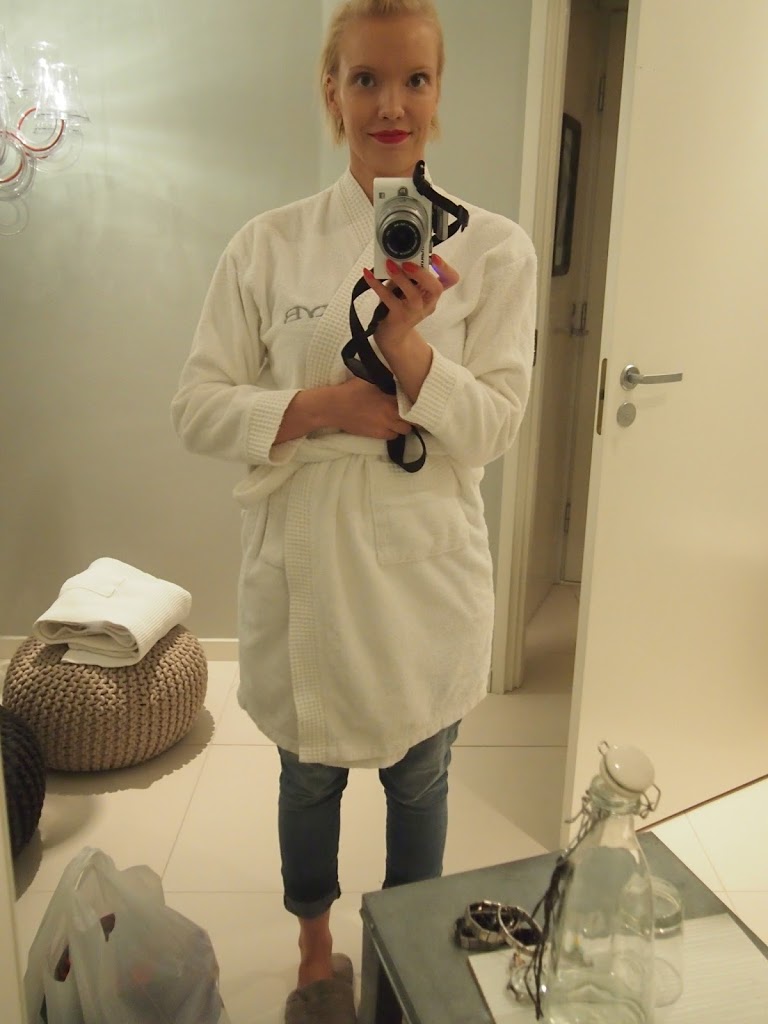 Mua hemmoteltiin Kauneuslinnassa oikein toden teolla. Tuotteisiin tutustumisen jälkeen pääsin kasvohoitoon, jonka ihana kosmetologi Maria toteutti Dermavidualsin tuotteilla. Mari oli alunperin kaavaillut mulle yllätykseksi kuumakivihierontaa, mutta avauduttuani kenkkuilevasta ihostani, suunnitelmat muuttuivat, ja tiedossa olikin kasvohoito. Sain kuitenkin hoidon alussa olevan selkähieronnan aikana nauttia lämpöisistä kivistä, kun ne nyt olivat lämpiminä valmiiksi ;) Hoito oli kokonaisuudessaan todella miellyttävä ja rentouttava (vaikka Maria teki mekaanisen puhdistuksenkin!) ja iho näytti hoidon jälkeen levänneeltä ja terveeltä. Ilokseni sain kuulla, että kaikki Aila Airon kasvohoidot alkavat rentouttavalla selkähieronnalla ja hoidon jälkeinen ehostus kuuluu hintaan, jos ei halua lähteä ihmisten ilmoille meikittä.