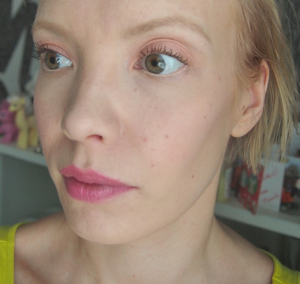 Meikkaaja-Emmi halusi tehdä mulle keväisen hempeän silmämeikin, jonka hän toteutti pastellisella Zuiin Spirit-nelikolla. Poski- ja huulipuna sekä ripsari olivat Kjaer Weisiltä ja aiemmin mainitsemani silkkipuuteri Couleur Caramelilta. Mutta se meikkipohja…
