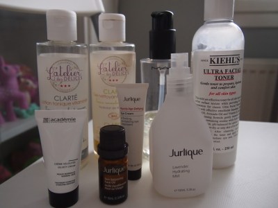 Noniin. Eli aamulla siis puhdistan kasvovedellä yövoiteen jäämät ja talin iholta. Käytössäni on Jurliquen suihkutettava kasvovesi (tykkään niistä kaikista, tällä hetkellä käytössä on Lavender Hydrating Mist), L´Atelier des Délicesin Clarté-kasvovesi ja Kiehl`sin Ultra Facial Toner. Näitä käytän fiiliksen mukaan :) Atelieria käytän kun tuntuu, että iho kaipaa puhdistavampaa otetta, Kiehl`siä kun haluan kosteutta ja Jurliquea kun haluan freesausta ja piristystä. Kiehl`sin UFT:sta ajattelin kirjoittaa ihan oman postauksensa piakkoin :)