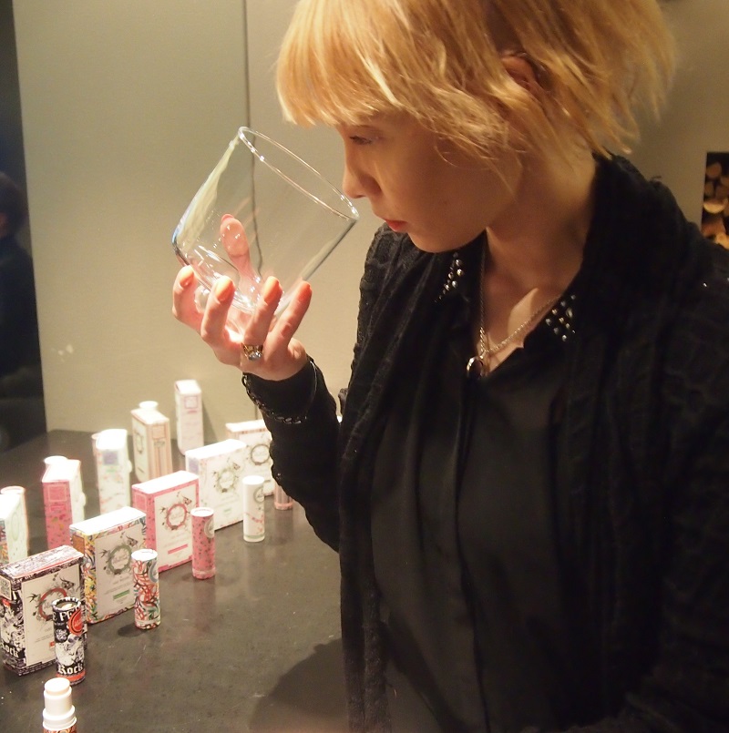 Tuoksuttelin puikkoja (ja kupuja, haha) ihan pää pyörällä, ja joukosta löytyi vaikka kuinka monta ihanaa. Paikalla oli myös nainen Le Soft Perfumejen takana, Isabelle Masson-Mandonnaud, jonka aito omistuneisuus ja innostuneisuus teki tuoksuista vieläkin kiinnostavampia. Isabelle kertoi, että merkitä on tulossa myöhemmin myös nestemäisiä tuoksuja ja mainitsipa hän jotain puuterimaisesta tuoksustakin… Jään innolla odottamaan, mitä tämä uskomaton nainen saa vielä aikaan. Hänhän perusti aikoinaan miehensä kanssa Sephoran :) Ei mikään ihan pikkutekijä siis!