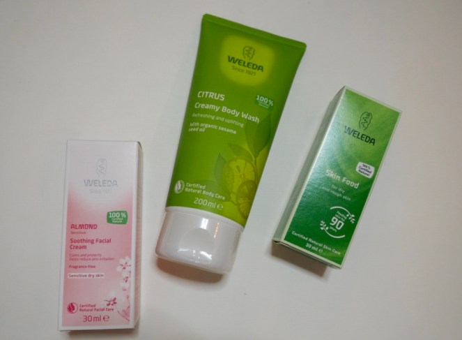 Halusin mukaan myös jonkin kasvotuotteen ja herkälle iholle tarkoitettu mantelisarjan Almond Soothing Facial Cream* tuntui vuodenaikaan sopivalta valinnalta. Anna on melko lailla minun ikäiseni ja hänen ihonsa kuulosti hyvin saman tyyppiseltä kuin omani, joten uskallan toivoa, että hän tykästyy tähän konstailemattoman toimivaan ja luonnolliseen kosteusvoiteeseen, joka sopii niin yöksi kuin jopa aamulla meikin alle. Niin ja mitä pidin Citrus Creamy Body Washista*? RAKASTUIN! Herkullinen, aito ja tarpeeksi selkeä sitrustuoksu ja aivan uskomattoman hoitava koostumus! Ihan kuin olisi laittanut kosteusvoiteen suihkussa <3 Suosittelen kaikille kuivaihoisille, tämä on ihan löytö! Weleda on muuten mielestäni merkki, jonka tuotteilla on erinomainen hinta-laatusuhde! Esimerkiksi tuon mantelikosteusvoiteen löysin Biodellyltä* hintaan 25,90 €!