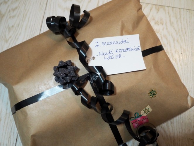 Viime vuonna en uskaltanut paljastaa lukija-arvonnan voittajan Maanantaijoulukalenterin luukkuja, koska pelkäsin voittajan kurkkivan postausta etukäteen :). Sain kuitenkin niin monta kysymystä kalenterin sisällöstä, että tänä vuonna laitoin voittaja-Annan lupaamaan, että jos teen postauksen, hän lupaa pyhästi olla lukematta sitä liian aikaisin :) Onhan nämä jutut nyt kiva vilauttaa teillekin ja tässähän tulee samalla hyviä joululahjavinkkejä sinne ruudun toiselle puolelle olettaen, että muutkin kuin minä ovat vielä vaiheessa asian kanssa.