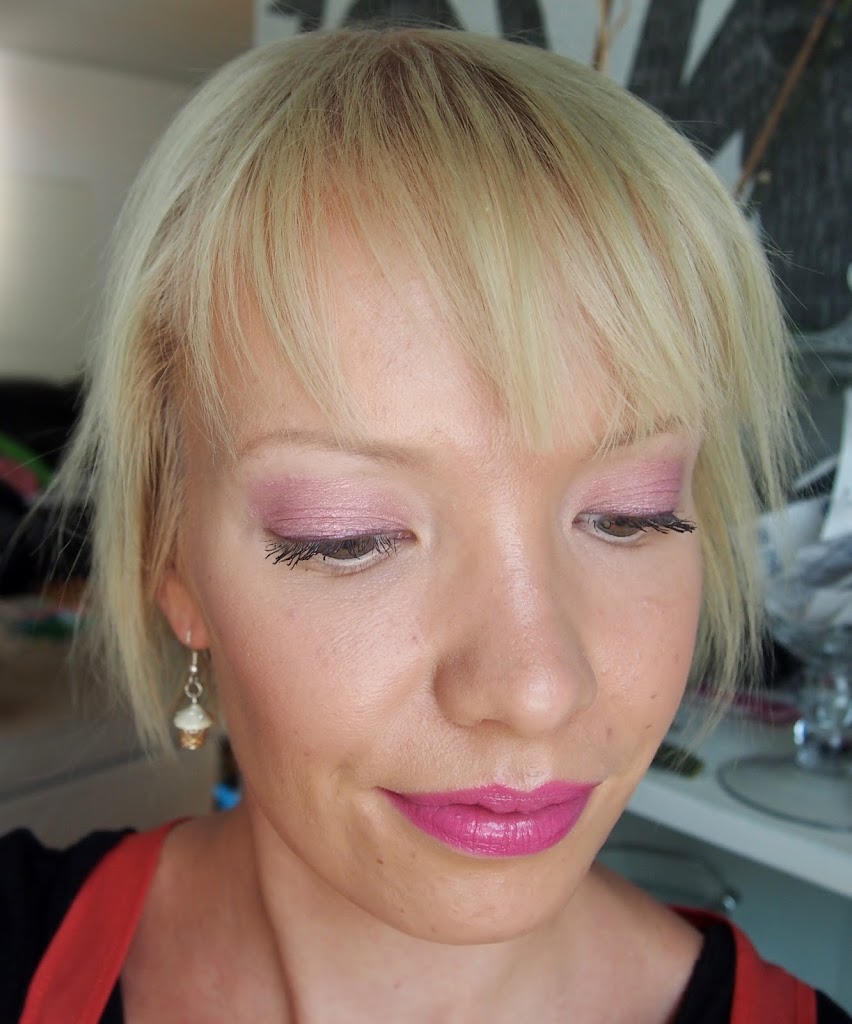 NARSista pakko mainita sen verran, että tarkoituksenani oli ostaa klassikkoposkipuna Orgasm. Kävelin merkin pisteelle ihan onnessani, mutta kylläpä Orgasm oli karvas pettymys! Persikkainen hohtava sävy sinänsä on kaunis, mutta ihan vastaava kuin omistamani MUSin Lush. Mutta se koostumus…noin hileistä ja rakeista poskipunaa en ole varmaan eläissäni testannut. Poskipunan pitää mielestäni olla pehmeä ja nätisti levittyvä, ei kova ja hileinen! Orgasm jäi kauppaan niin että napsahti ;)